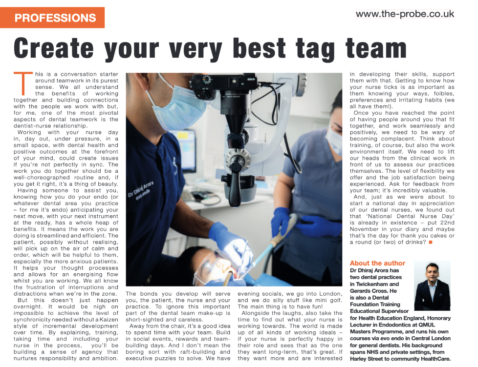 This is a conversation starter around teamwork in its purest sense. We all understand the benefits of working together and building connections with the people we work with but, for me, one of the most pivotal aspects of dental teamwork is the dentist-nurse relationship.