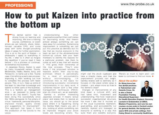 The dental sector has a strong focus on learning and improving. We love a training course, conference or event where we can network, share, listen, harvest valuable CPD and come away with some thought-provoking ideas or areas for further exploration. This is all in the spirit of Kaizen – a philosophy I apply to everything in my life. I refer to it often so forgive the repetition if you’ve read it here before – it’s a process of continual, incremental improvement.