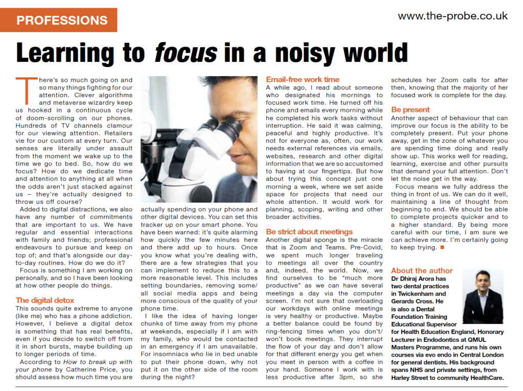There’s so much going on and so many things fighting for our attention. Clever algorithms and metaverse wizardry keep us hooked in a continuous cycle of doom-scrolling on our phones. Hundreds of TV channels clamour for our viewing attention. Retailers vie for our custom at every turn. Our senses are literally under assault from the moment we wake up to the time we go to bed. So how do we focus? How do we dedicate time and attention to anything at all when the odds aren’t just stacked against us – they’re actually designed to throw us off course?