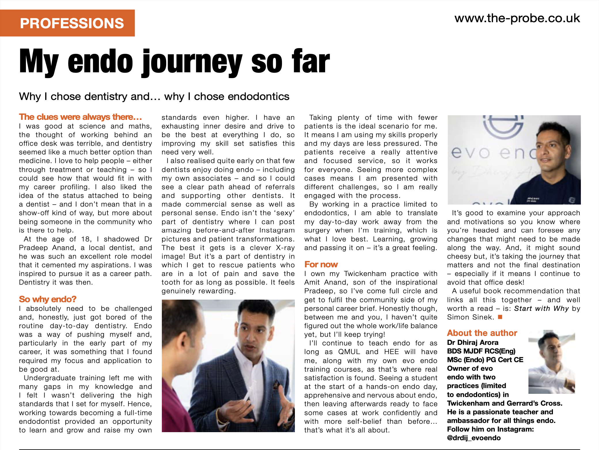 I’ll continue to teach endo for as long as QMUL and HEE will have me, along with my own evo endo training courses, as that’s where real satisfaction is found. Seeing a student at the start of a hands-on endo day, apprehensive and nervous about endo, then leaving afterwards ready to face some cases at work confidently and with more self-belief than before… that’s what it’s all about.